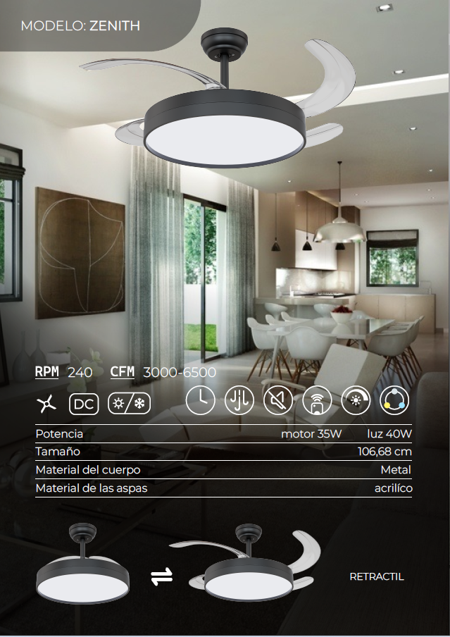 Ventilador Retráctil con control remoto ZENITH